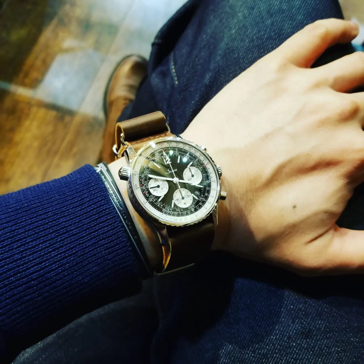 「ジンらしさ」という点で言えば、「903」は10気圧防水で本家より防水性能が上がっています。本家ナビタイマーはほとんど非防水なので、街で着用する分には「903」の方が使い勝手が良いわけです。