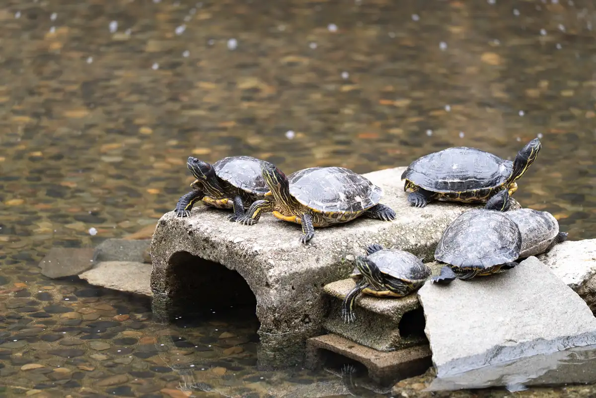 ちなみにこの子たちは、所謂「ミドリガメ(ミシシッピアカミミガメ)」だそうです。冬になると本来は土に潜るなどして過ごす習性があるそうですが、この環境ではそれも無理。過酷過ぎますし何とかならないものでしょうか??