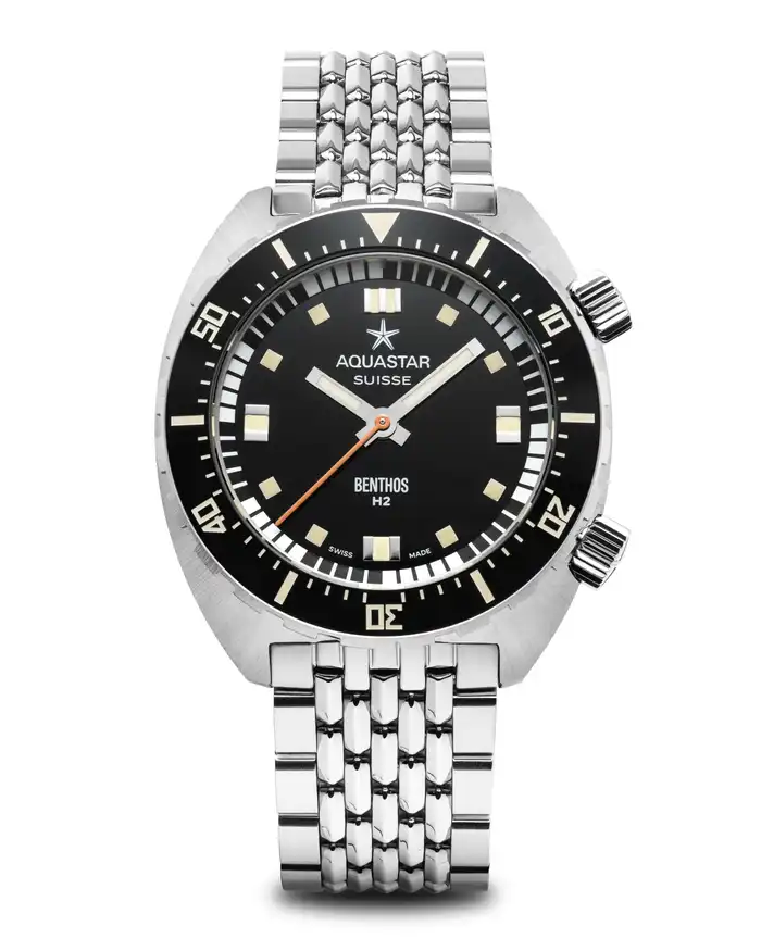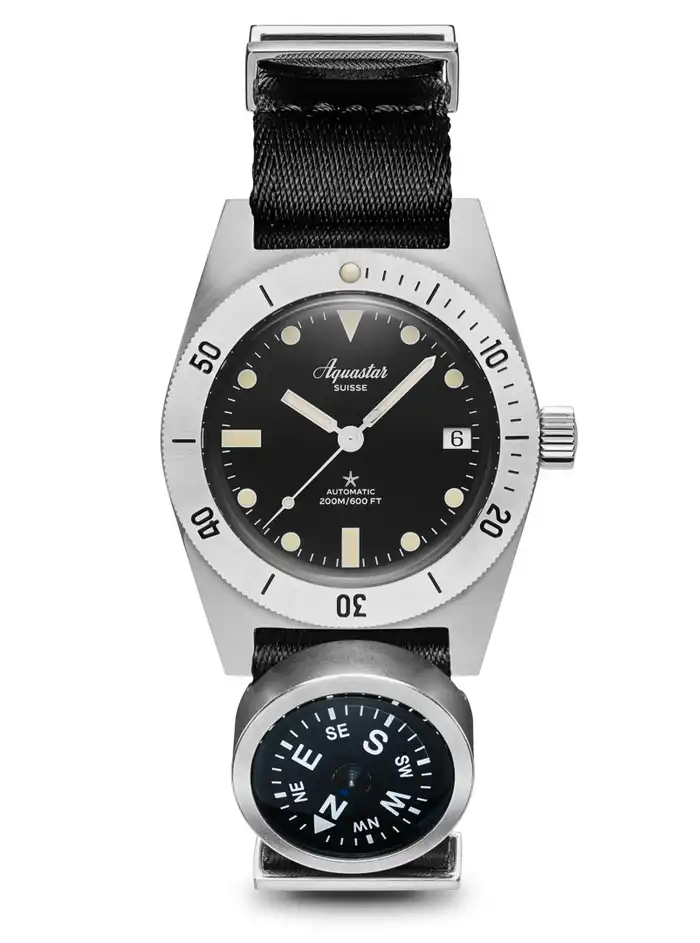 潜水時間を測定するための高機能な回転ベゼルやコンパス、水深計や温度計を備えたアクアスターの時計は、現代のダイブコンピュータに匹敵する機能を持っていました。何度かの売却で経営者が変わりましたが、現代に至るまで「伝説のダイバーズウォッチブランド」としての静かな名声を保ち続けています。