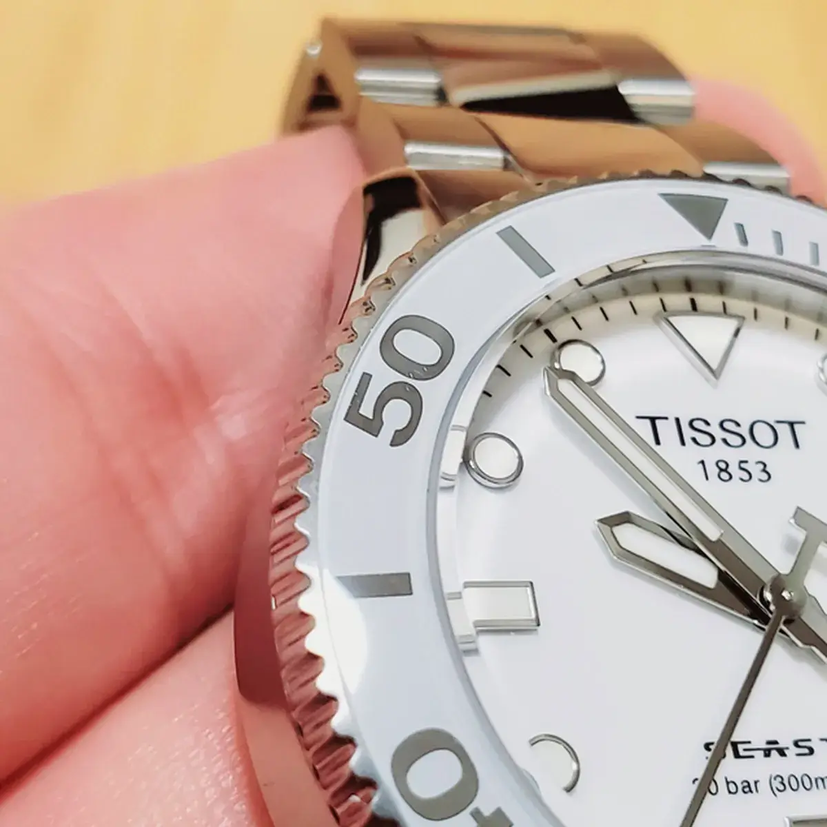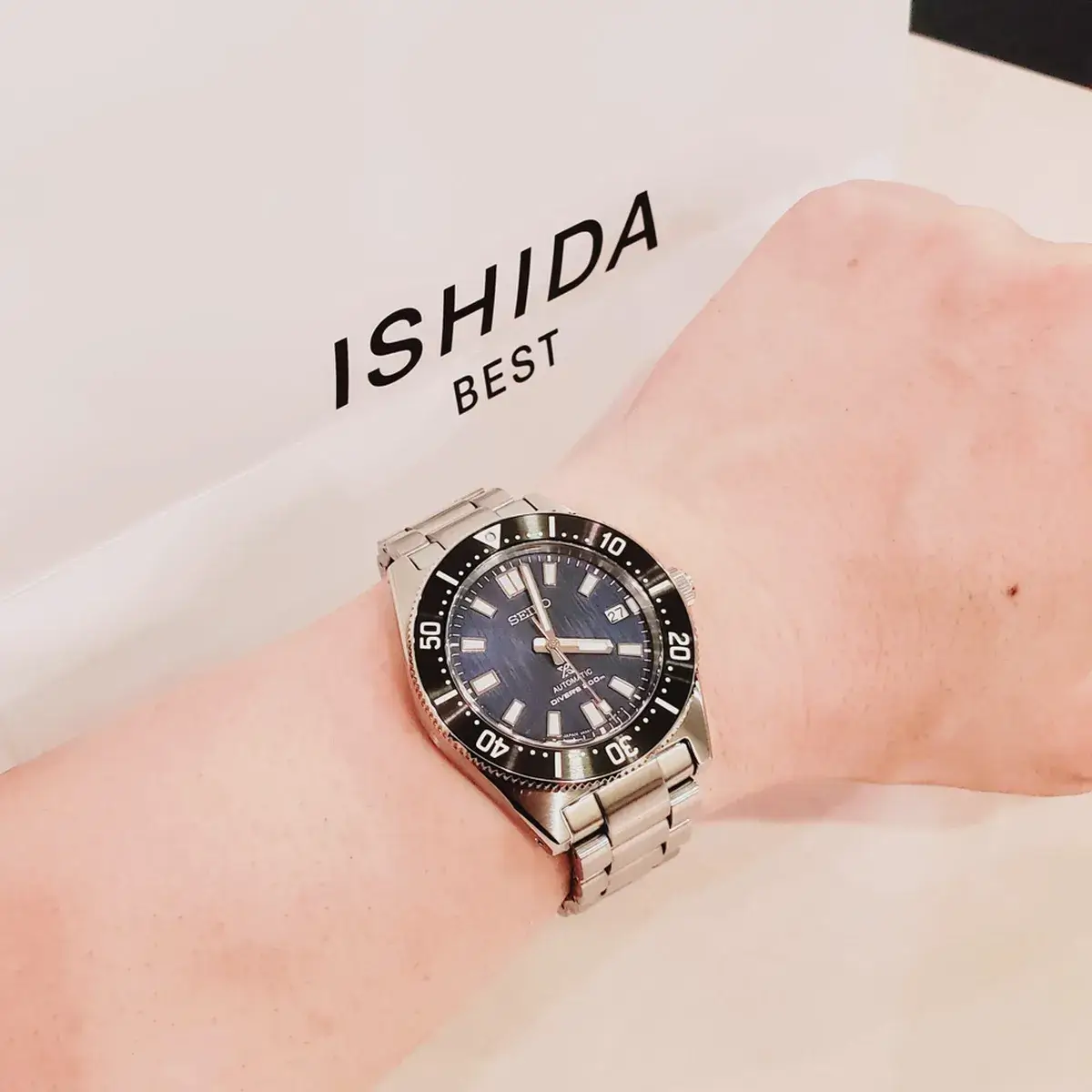 少し気になったのですが、時計を試着している写真が、ティソではなくセイコーのダイバーズになっております。