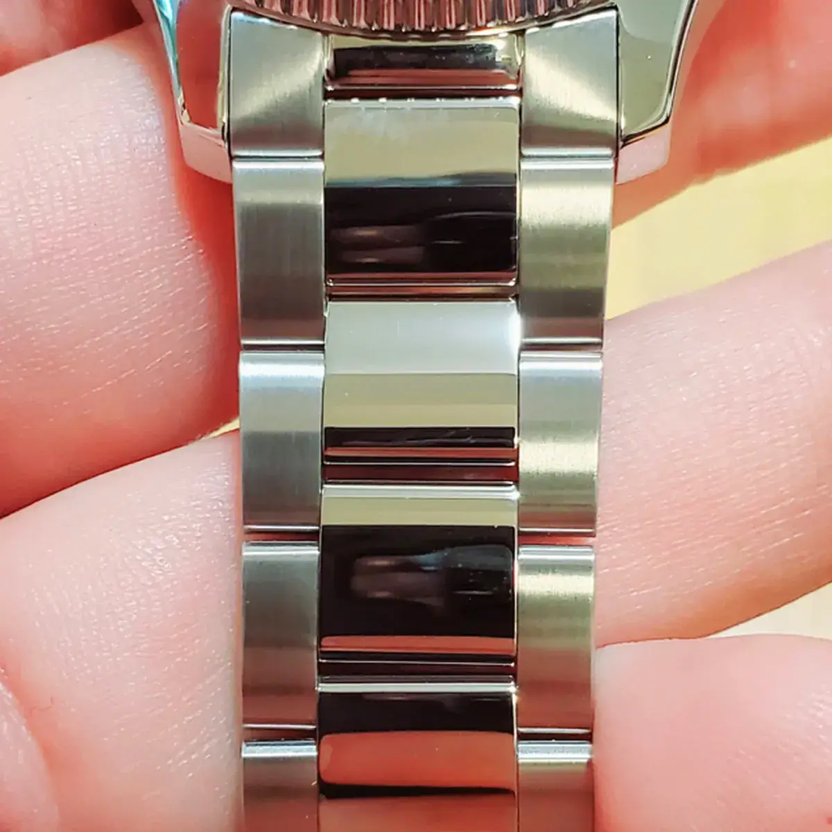 価格で考えたら、本当に良くできたブレスレットです。中コマのポリッシュも丁寧ですし、サテン部分の仕事も抜かりありません。